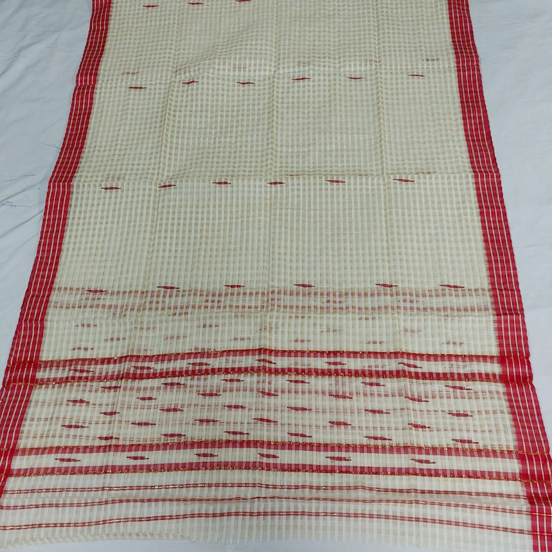 Kesa Pator Sador is a traditional Assamese attire made from fine cotton or silk, typically worn by women during cultural or religious events. It is characterized by its intricate designs and the use of elegant borders, symbolizing grace and cultural pride in Assam.
